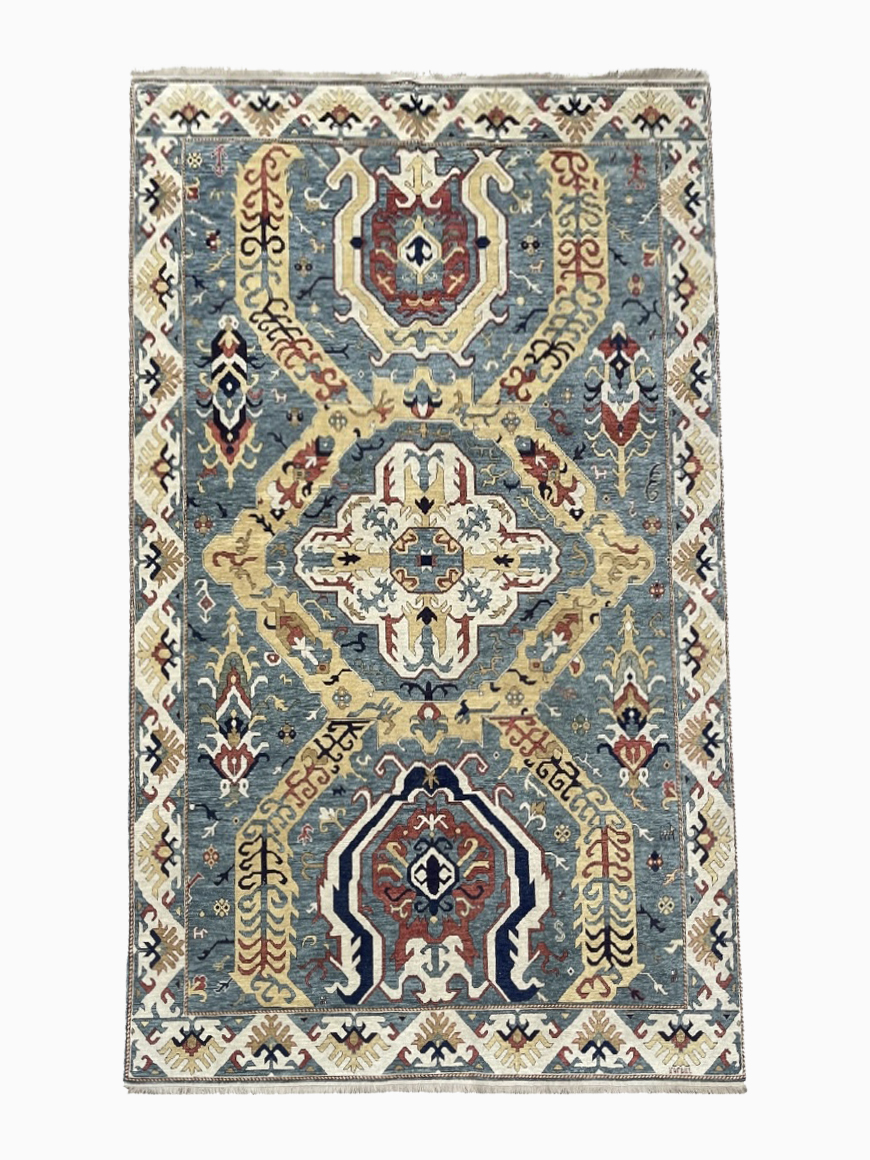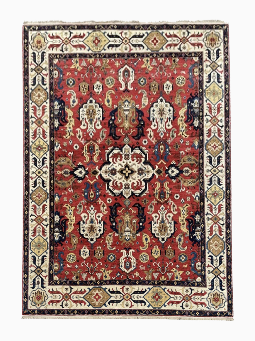The design of the Anahit rug is based on the fairy tale ՛՛Anahit and Vachagan՛՛, in which Anahit, a simple girl, forces the prince to learn to weave rugs. Later, the crown prince learns to weave rugs under Anahit’s pressure because he wanted to marry Anahit. Later, during the war, King Vachagan is captured, and at that time he asks the king of the enemy state to let him weave a rug, in which he writes a letter addressed to Anahit. In the letter, he reveals the place of his captivity, and thanks to the rug, Anahit is able to free her husband.