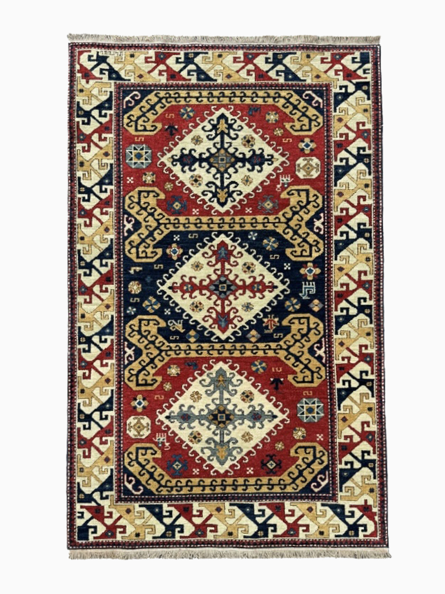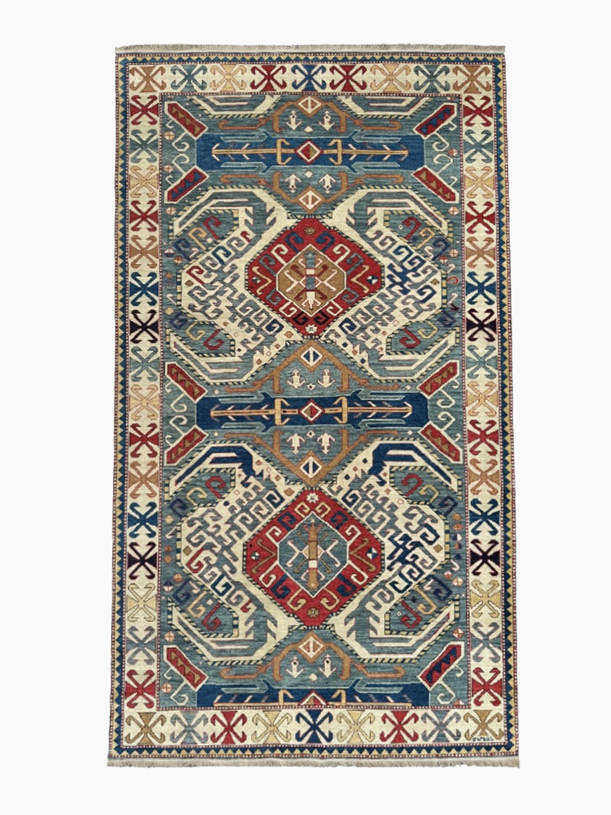 The design of the Aramazd rug is named after Aramazd, the creator of the sky and the earth in Armenian mythology. The carpet has a very beautiful and rich design. It is one of the designs from the early period of Christianity, which has come down to us in this form. It was restored by the designers of the ՛՛Megeryan Carpet՛՛ company. In the center of the rug is a cross and all around are dragons, and the dragons are surrounded by chains.