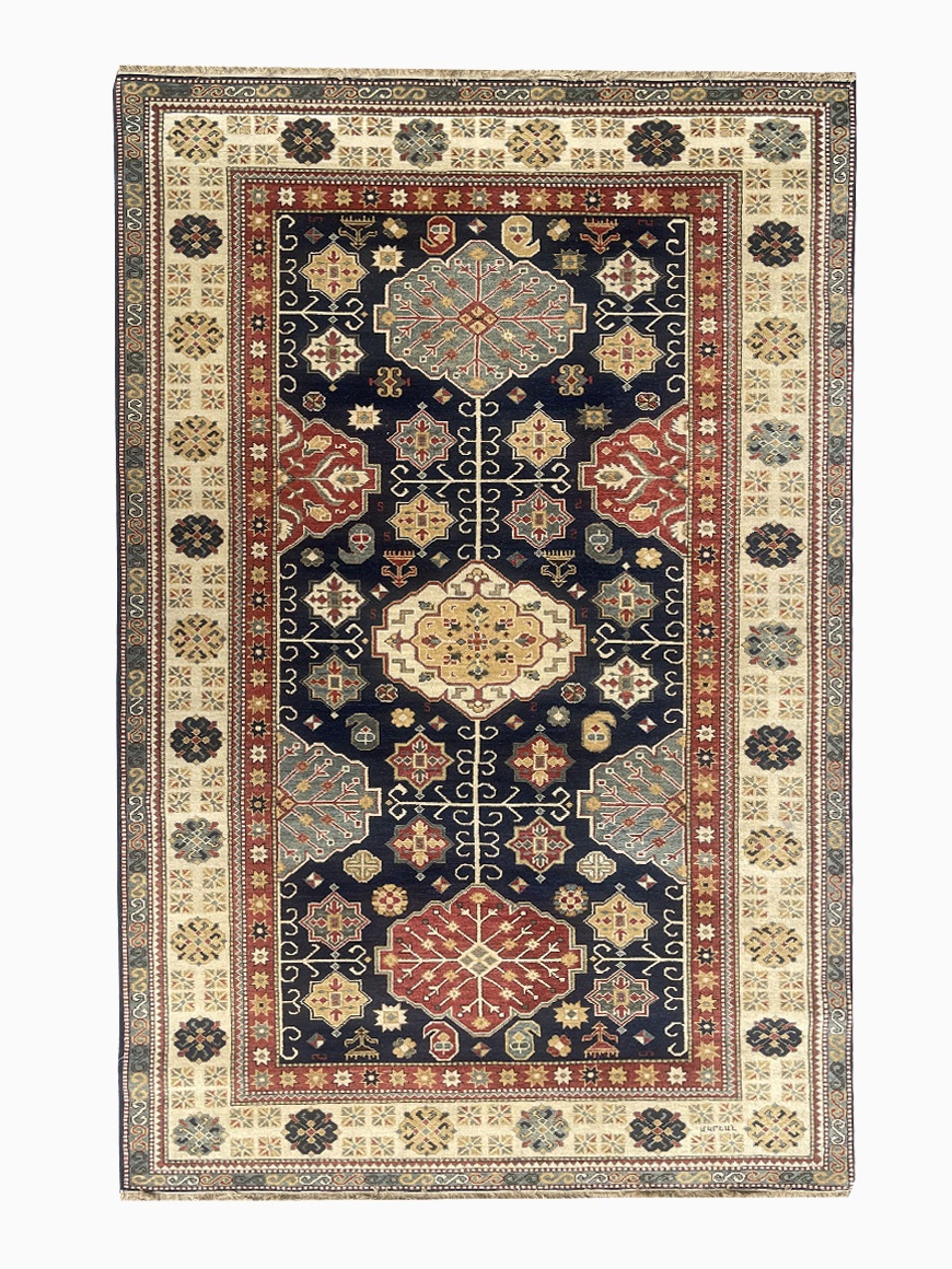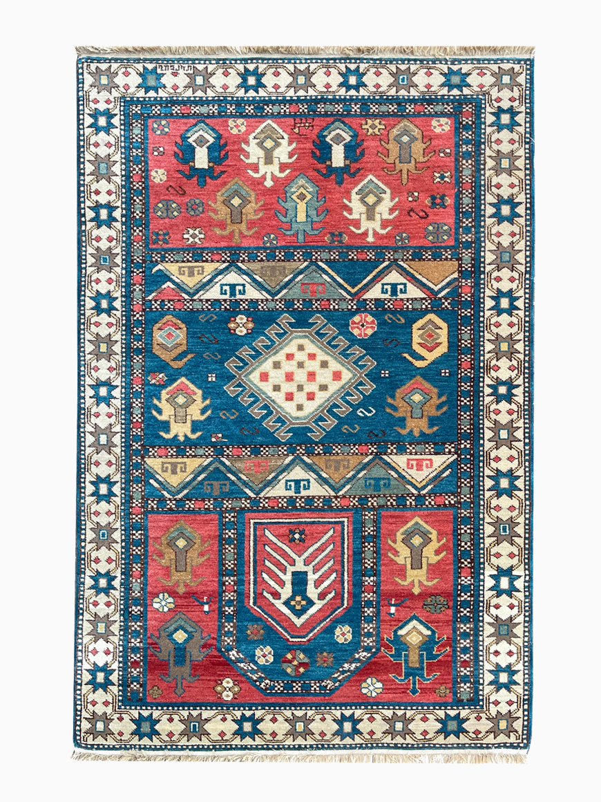 The Jraberd rug design is identified by the flowered cross ornament, which is surrounded with dragon like ornate symbols reminiscent of sunrays. This rug design belongs to the Dragon rug family. Jraberd rugs dating back to the 17th-18th centuries are renowned worldwide. This particular design was traditionally woven in the village of Jraberd in Artsakh.