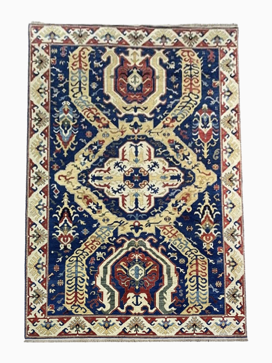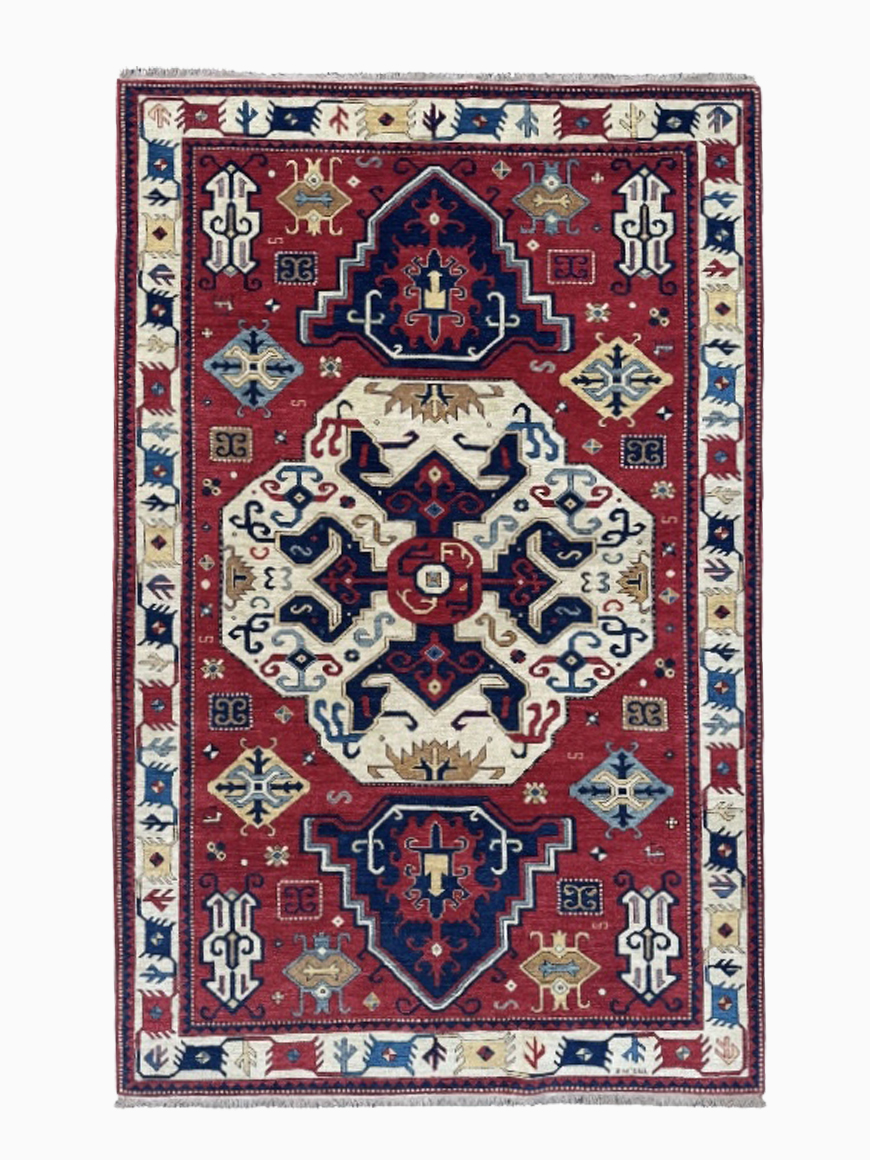 The Jraberd rug design is identified by the flowered cross ornament, which is surrounded with dragon like ornate symbols reminiscent of sunrays. This rug design belongs to the Dragon rug family. Jraberd rugs dating back to the 17th-18th centuries are renowned worldwide. This particular design was traditionally woven in the village of Jraberd in Artsakh.