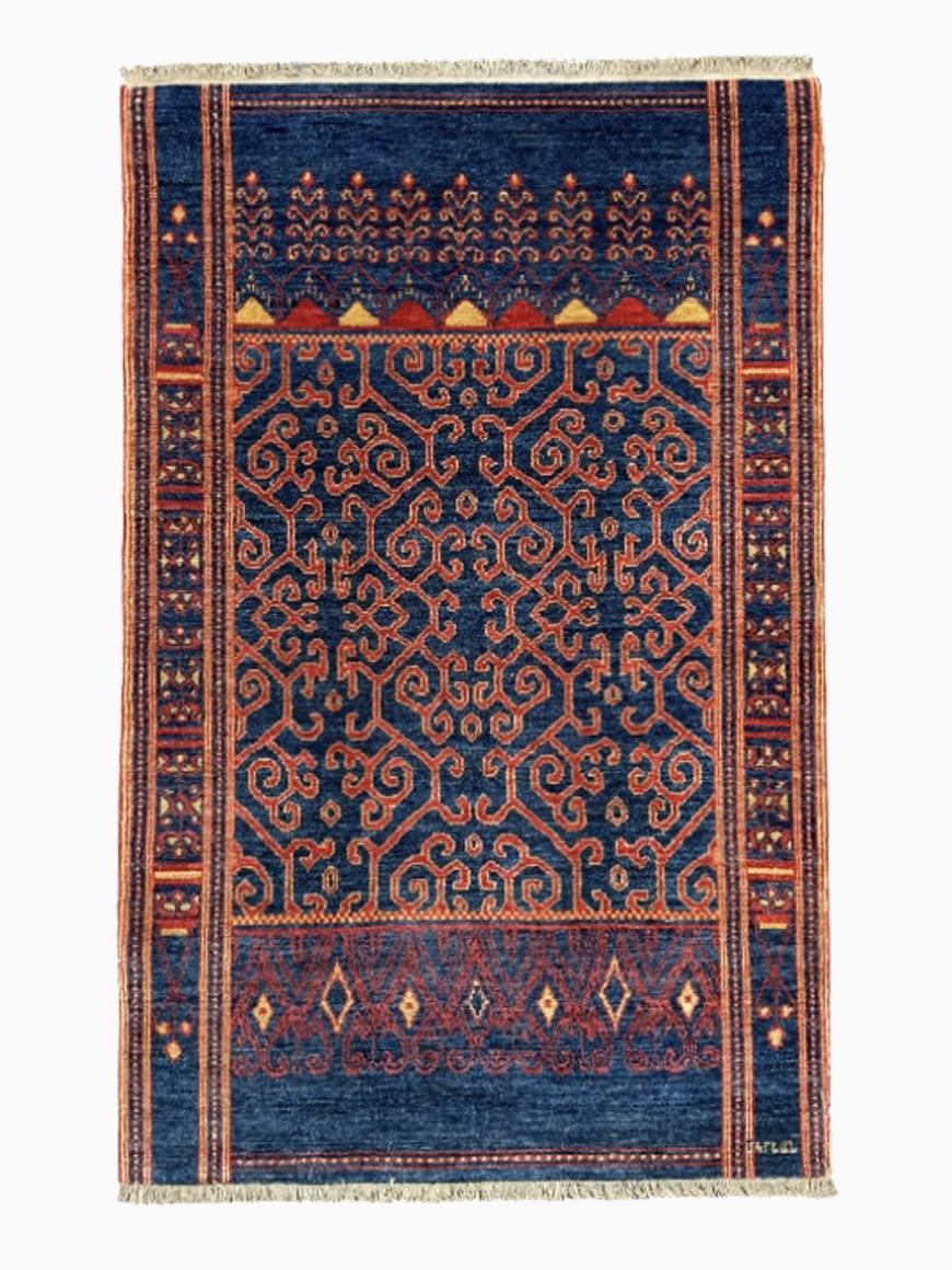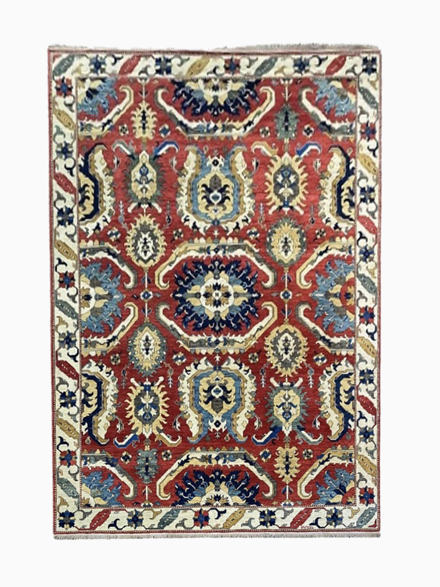The Jraberd rug design is identified by the flowered cross ornament, which is surrounded with dragon like ornate symbols reminiscent of sunrays. This rug design belongs to the Dragon rug family. Jraberd rugs dating back to the 17th-18th centuries are renowned worldwide. This particular design was traditionally woven in the village of Jraberd in Artsakh.