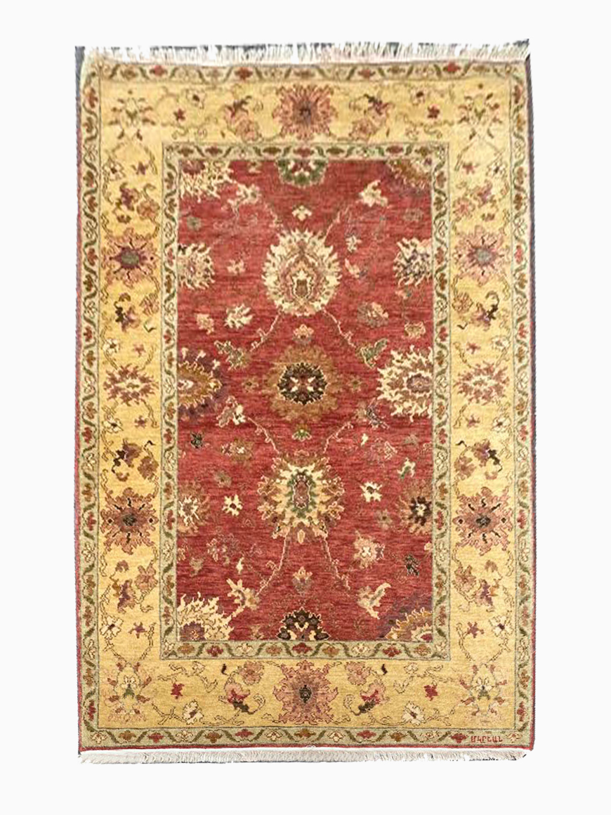 The design of the rug belongs to the family of dragon carpets. According to the information we have, it is a medieval design. The semi-hooked crosses depicted around the center of the rug are completely depicted with dragon heads, which protect the central part.