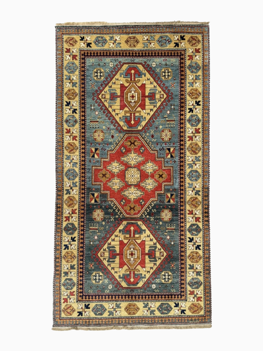 The design of the rug belongs to the family of dragon carpets. According to the information we have, it is a medieval design. The semi-hooked crosses depicted around the center of the rug are completely depicted with dragon heads, which protect the central part.