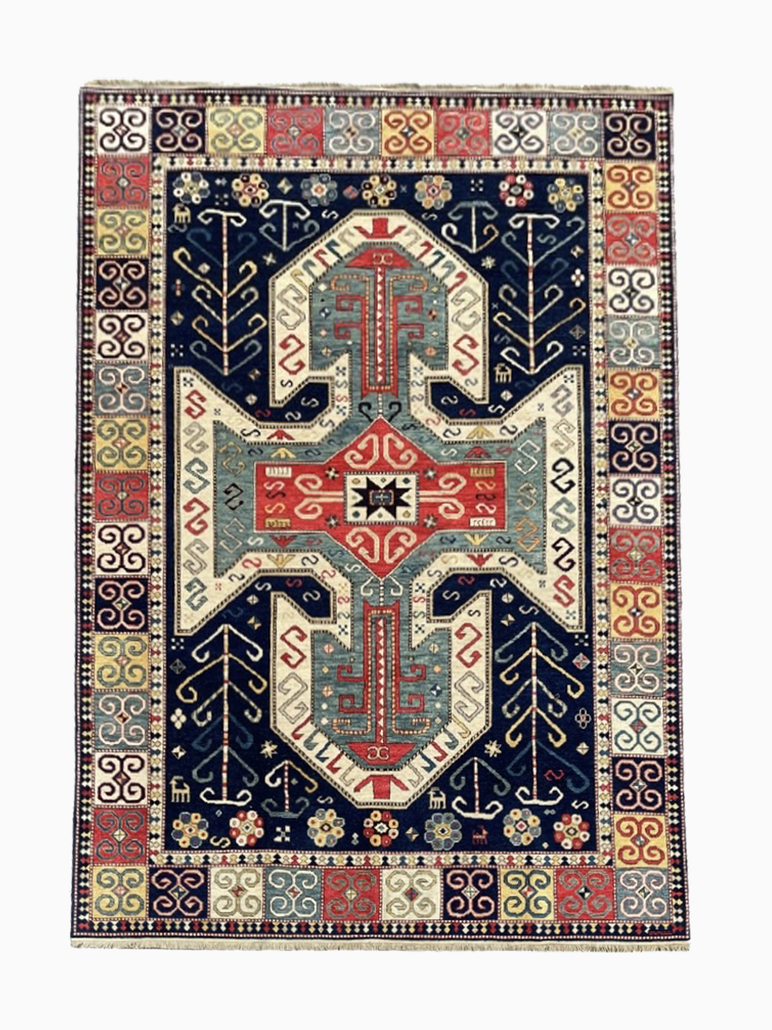 The Jraberd rug design is identified by the flowered cross ornament, which is surrounded with dragon like ornate symbols reminiscent of sunrays. This rug design belongs to the Dragon rug family. Jraberd rugs dating back to the 17th-18th centuries are renowned worldwide. This particular design was traditionally woven in the village of Jraberd in Artsakh.